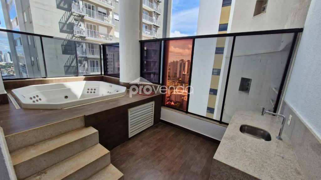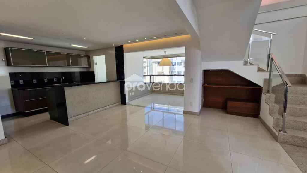No pavimento inferior, o imóvel conta com sala ampla para 3 ambientes com home theater, sacada, lavabo, cozinha americana com armários planejados e área de serviço. Destaque para a varanda externa com hidromassagem, perfeita para momentos de relaxamento.