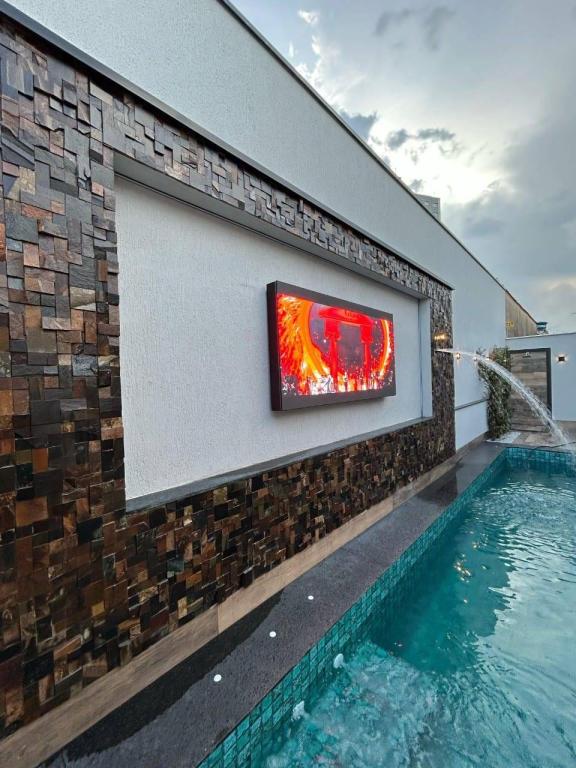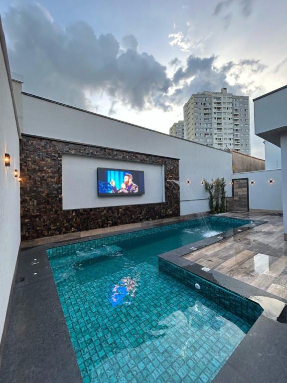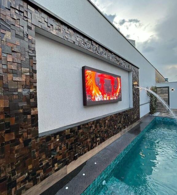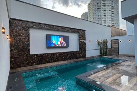 - Área de Lazer: piscina aquecida com hidromassagem e cascata e um telão de LED