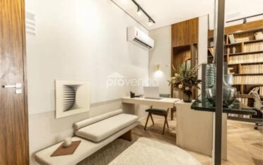 Piso em porcelanato e iluminação com luminárias elegantes, garantindo um ambiente sofisticado e aconchegante.