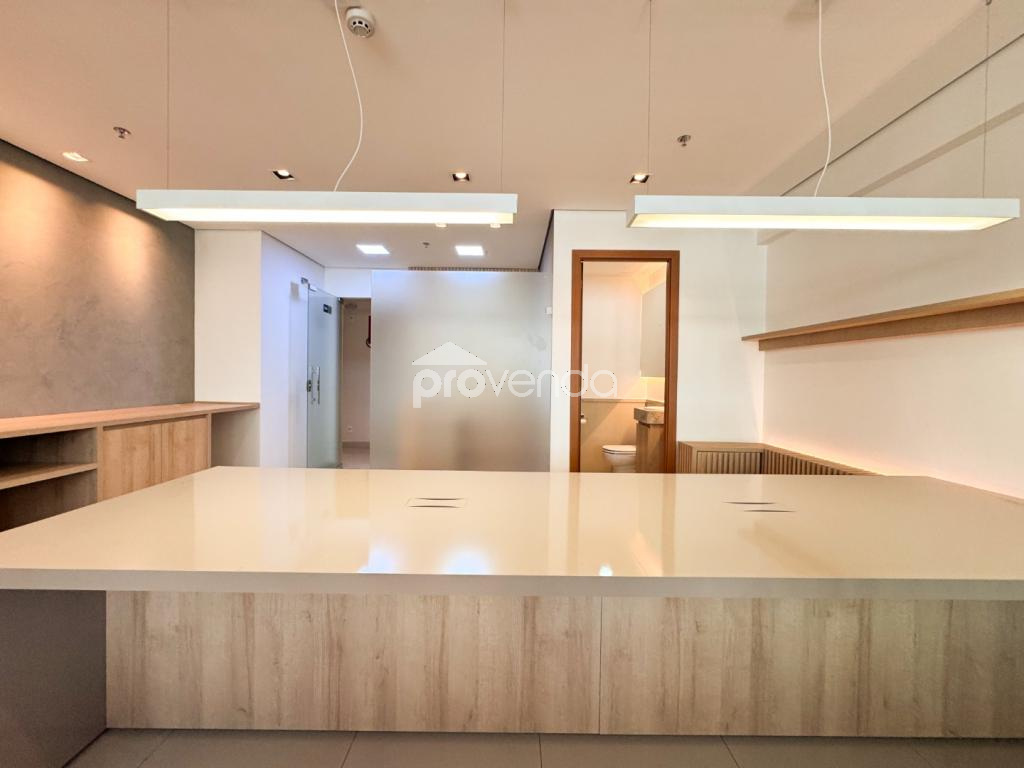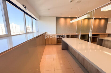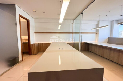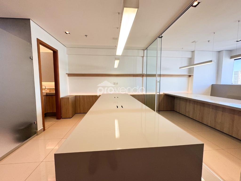 Com vista definitiva para o Parque Flamboyant, a sala proporciona um ambiente de trabalho moderno, inspirador e sofisticado.