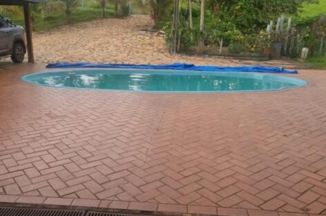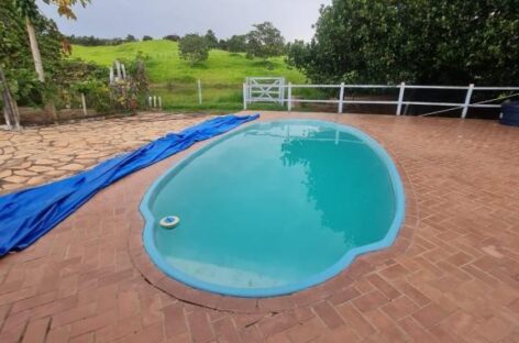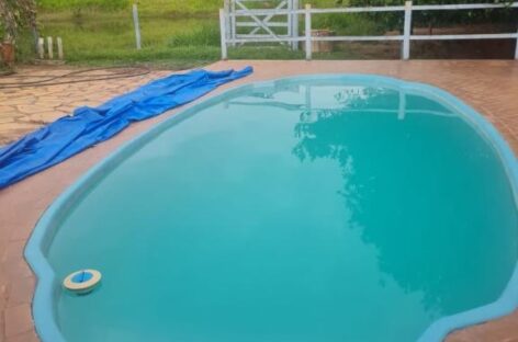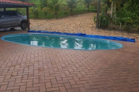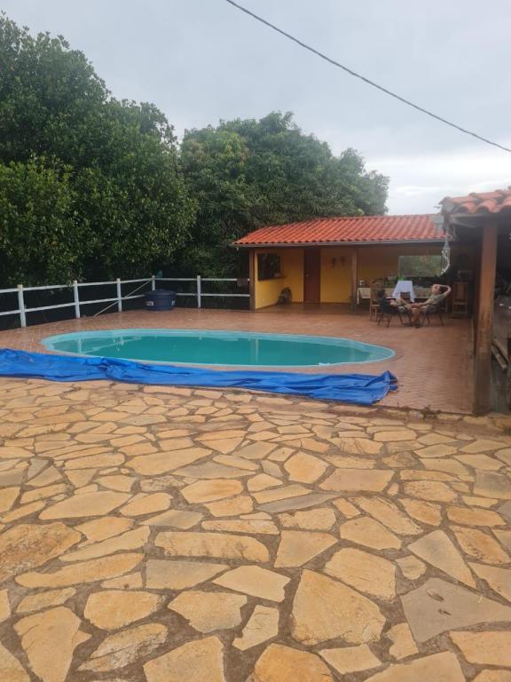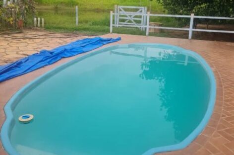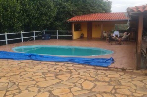 Área de lazer completa: piscina, churrasqueira, fogão e forno a lenha