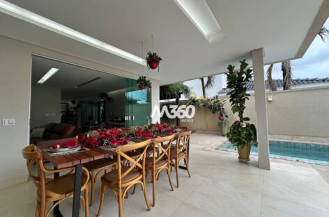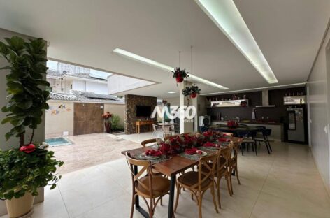 Sobrado amplo com ambientes integrados de sala de jantar, estar e TV, proporcionando conforto e praticidade. Conta com piscina, área gourmet e cozinha planejada. Área de serviço e lavanderia completa.
