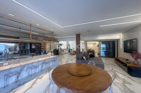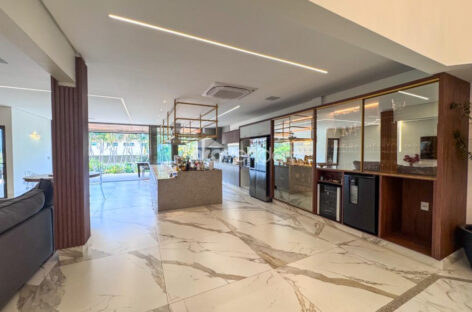 Com 1.474 m² de terreno e 406 m² de área construída, o imóvel impressiona pelo design moderno, acabamentos refinados e integração total dos ambientes.