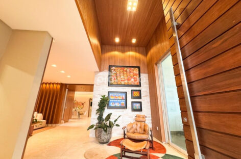 Apresentamos este sobrado imponente e sofisticado no Residencial Alphaville Goiás, um dos endereços mais valorizados e seguros de Goiânia. Com 527,69 m² de construção em um terreno amplo de 828,79 m², este imóvel foi planejado para oferecer conforto, tecnologia, privacidade e lazer completo para toda a família.