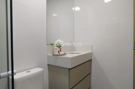 O imóvel flexível inclui uma charmosa varanda, perfeita para desfrutar de momentos de relaxamento ao ar livre. O acabamento é impecável, com piso em porcelanato polido e bancadas em granito, elevando o padrão de qualidade em cada detalhe do imóvel.